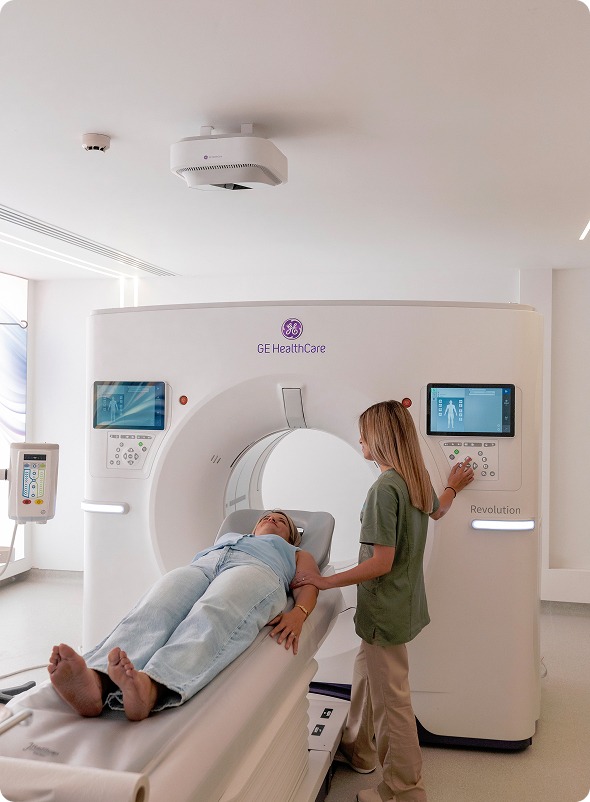 Στο Διαγνωστικό Κέντρο mesogeios, πρωτοπορούμε θέτοντας νέα πρότυπα ποιότητας στις διαγνωστικές υπηρεσίες. Με τον υπερσύγχρονο αξονικό τομογράφο Revolution APEX Plus της GE HealthCare, έναν από τους πιο καινοτόμους στον κόσμο, καλύπτουμε ένα ευρύ φάσμα εξετάσεων – από βασικές απεικονίσεις έως εξειδικευμένες εφαρμογές σε καρδιολογία, νευρολογία και ογκολογία.